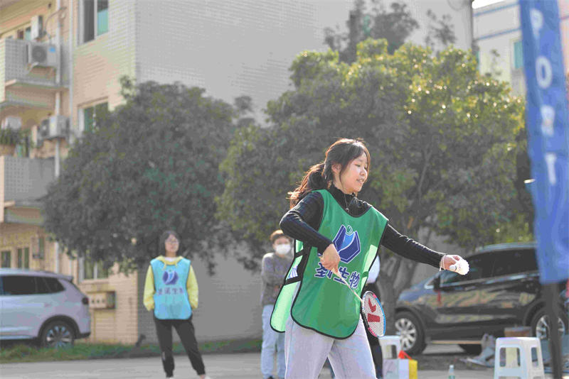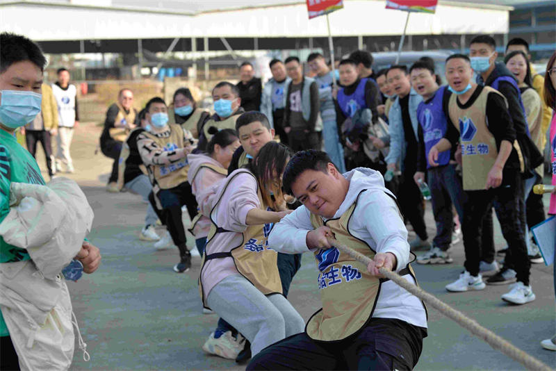 本次運動(dòng)會(huì )設置了個(gè)人賽和團體賽,個(gè)人賽包含羽毛球、乒乓球男女單打比賽;團體賽包含兩人三足、背力接球、拔河比賽三個(gè)項目。公司董事長(cháng)文永均先生,董秘余嘯海先生出席運動(dòng)會(huì )開(kāi)幕式,文董代表公司向運動(dòng)會(huì )艱辛努力的各參賽選手表示衷心的感謝,向付出辛勤汗水的工作人員表示誠摯的問(wèn)候,并預?!笆ブZ生物第一屆運動(dòng)會(huì )”取得圓滿(mǎn)成功。開(kāi)幕式上,各參賽團隊運動(dòng)員身著(zhù)統一的運動(dòng)馬甲,由10支團體賽參賽隊伍和乒乓球、羽毛球個(gè)人賽、裁判組組成的共計13支參賽隊并列站排依次介紹隊名、口號。那慷慨激昂的氣勢,無(wú)一不彰顯著(zhù)圣諾人昂揚向上的精神風(fēng)貌。運動(dòng)會(huì )伴隨著(zhù)歡快的音樂(lè )節奏,運動(dòng)員的熱身活動(dòng)中拉開(kāi)序幕。