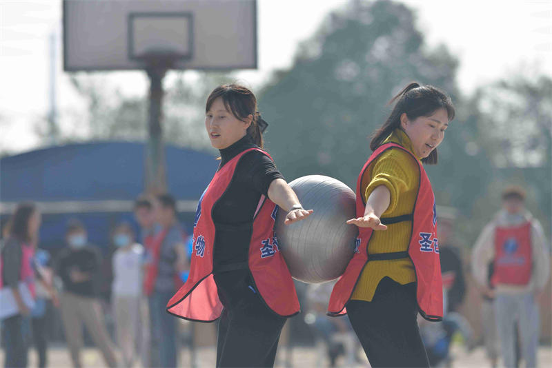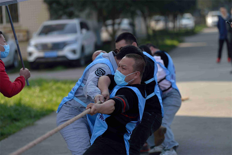 團體比賽的十支參賽隊伍分別同時(shí)參加背力接球、兩人三足、拔河比賽三個(gè)項目,以三項積分總額高低獲得名次。隨著(zhù)裁判口哨的吹響,運動(dòng)場(chǎng)頓時(shí)沸騰起來(lái),賽道上的運動(dòng)員在奮力爭搶?zhuān)徊úǖ谋荣悎?chǎng)面讓觀(guān)眾怦然心動(dòng)。最精彩的是拔河比賽,雙方隊員拼盡全力,使出渾身解數,紅繩在兩隊的角逐中來(lái)回移動(dòng)讓人激動(dòng)萬(wàn)分,拉拉隊員們雙手握拳、恨不得沖上去幫忙。