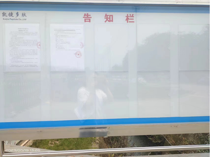 成都暉蓉生物科技有限公司在項目所在地張貼了公示公告,時(shí)間為2023年5月16日~2023年5月30日(10個(gè)工作日)。張貼位置包括項目所在地、項目周邊企業(yè)、項目周邊敏感點(diǎn)等,易于公眾接觸和閱讀。張貼現場(chǎng)照片如下所示: