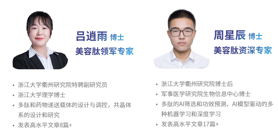 浙江大學(xué)衢州研究院&圣諾生物組建的美容肽創(chuàng )新聯(lián)合研發(fā)中心擁有6000平實(shí)驗室,是一所集天然藥物制備、化學(xué)生物藥綠色合成、創(chuàng )新藥物研發(fā)藥物制劑、醫藥添加劑創(chuàng )制五位一體的前沿性研發(fā)平臺。目前全職研發(fā)人員超40名,由7名學(xué)術(shù)背景優(yōu)異的博士專(zhuān)家領(lǐng)軍,全面覆蓋創(chuàng )新肽AI篩選和設計、環(huán)肽合成五大研究領(lǐng)域。