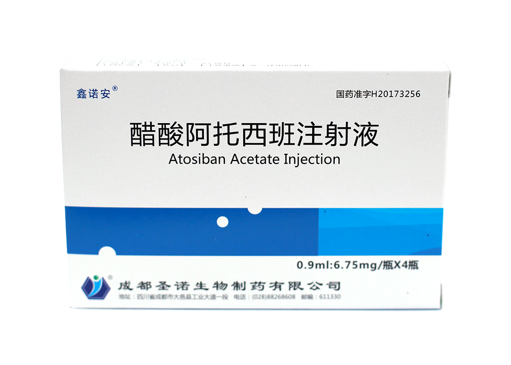 這款由成都圣諾生物制藥有限公司生產(chǎn)的用于推遲即將出現的早產(chǎn)的藥物——鑫諾安@醋酸阿托西班注射液。