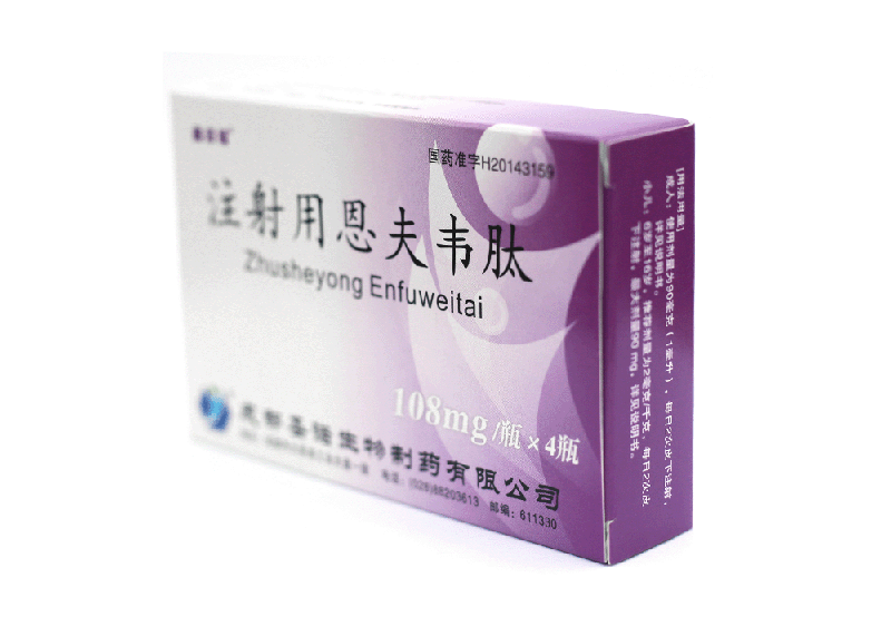 注射用恩夫韋肽使用前需要以無(wú)菌注射用水溶解,然后皮下注射給藥。如果溶解后不能立即使用,必須保存于2--8℃冰箱中,并在24小時(shí)內使用。冷藏的溶液注射前必須加熱至室溫(例如握在手中5分鐘),并且注射前應檢查確保溶液完全溶解,沒(méi)有顆粒物。